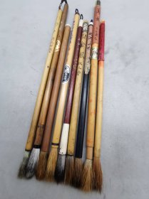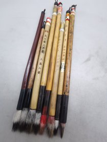 日本回流长峰狼兼毫毛笔5支打包出售,蓄墨适中,弹性好,适合大楷、行书、隶书、绘画等。有宝翰堂、文明堂、玉泉堂、大林堂等制作。口径9.2-11.9毫米,出锋3.7-5.0厘米。一支笔头根部有结墨。 清水试笔,不满意退货,不议价。