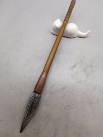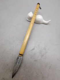 90年代火炬牌细光峰纯羊毫长峰斗笔一支,劳动最光荣之“荣”,上海工艺火炬牌,笔头细光峰纯羊毫毛料,无尼龙添加,无加健,毛料细腻通透,峰颖明显,蓄墨饱满,弹性弱。斑竹笔杆,牛角笔斗笔顶。出峰6.3厘米,口径12.6毫米,笔斗径13.2毫米,毛笔长23厘米。毛笔保存较好,正常使用痕迹,无明显瑕疵。 清水试笔,不满意退货,不议价。
