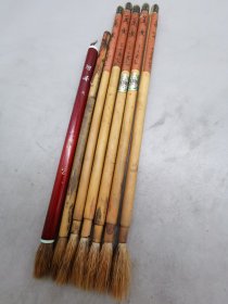 日本回流羊毫、狼羊兼毫中楷毛笔9支打包出售,纯动物毛,无尼龙添加,毛料扎实,弹性好,适合书法、国画、中楷书写。出峰2.2-2.9厘米,口径3.8-6.1毫米,有鸠居堂、长乐斋、松山堂、久保田号、可成屋、得应轩、李福寿等,整体保存不错,书写顺畅,蓄墨适中。 清水试笔,不满意退货,不议价。