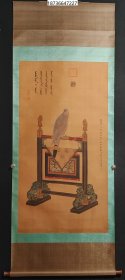 A旧藏纯手绘绢本四尺中堂带提拔ZZ126郎世宁御鹰图