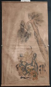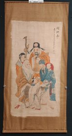 旧藏纯手绘老绢布YK24丁云鹏人物