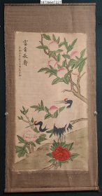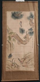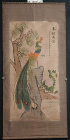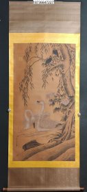 A旧藏纯手绘绢本四尺中堂带提拔ZZ122郎世宁花鸟
