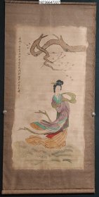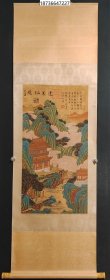A旧藏纯手绘绢本四尺中堂带提拔ZU47 武则天山水