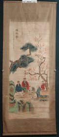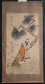A旧藏纯手绘绢本四尺中堂带提拔ZU12赵雍人物