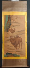 A旧藏纯手绘绢本四尺中堂带提拔ZZ121郎世宁双驼图