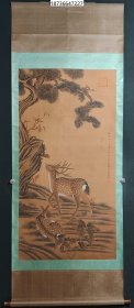 A旧藏纯手绘绢本四尺中堂带提拔ZZ123郎世宁瑞鹿图