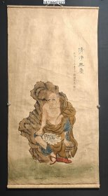 旧藏纯手绘老绢布YK37丁云鹏人物
