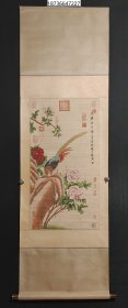 A旧藏纯手绘绢本四尺中堂带提拔ZZ125郎世宁花鸟图