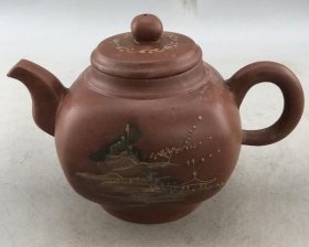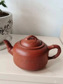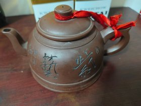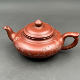 徐友泉款刻诗刻兰花茶壶一只,无盖子