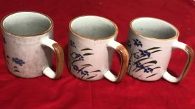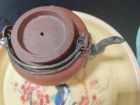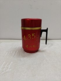 1985年“大明湖”牌紫砂端把保温杯,容量460毫升;紫砂内胆,铝质外壳,印“青-35-京 50-85 建团纪念”字样,还没查到是哪里的建团35周年的纪念杯,另一面印竹子。老货意义上的全品,竹子和文字略有磨蚀,能正常使用。是一件很有时代特色的茶具。 尺寸:高15公分,外径9公分。