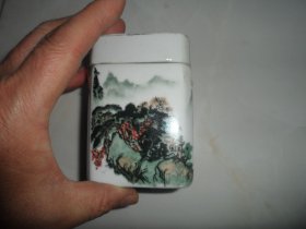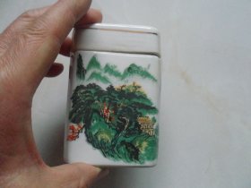 早期瓷器山水图案茶叶罐(福建政和茶厂,带原盖,品相好无磕碰)少见品种