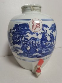 二十斤饮中八仙图青花瓷酒瓶,(接酒器)