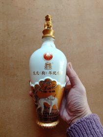 戊戌(狗)年纪念酒酒瓶—五粮液生肖系列酒,瓶盖蹲金狗,乾隆宫廷画家郎世宁的十犬图·苍水虬