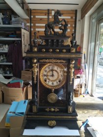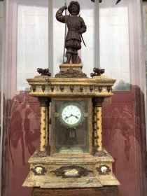 济南府老城改造工程拆迁有幸收来一老钟表,老教堂里淘来的,欧洲皇室贵族宫殿教堂等高端定制,拿破仑铜像矗立顶端,长茅腰刀威风八面,形象生动逼真栩栩如生,细致入微,表身整体彩玉石精工打造,工艺精湛独到精细,精美精致,工整严密精益求精,每个部位全部精铜配饰,精美绝伦,瓷盘名表,古朴典雅高贵,玉石细腻光滑饱满圆润,纹理清晰美观,整体感觉大气名贵奢侈,尽显皇室贵族风格,十分罕见,堪称绝品,唯美!钟表还能正常
