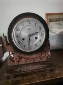 民国超漂亮马头鹿牌鎏金盘面座钟