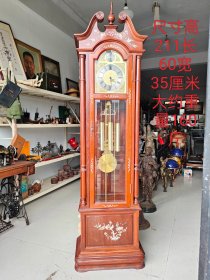 德国进口【赫穆勒】大型五音落地钟。黄花梨木外壳,德国原装五音机芯,音质清澈悠扬,听觉盛宴!尺寸大气磅礴,装饰性实用性非常好。正常使用,值得收藏,尺寸如图,包老