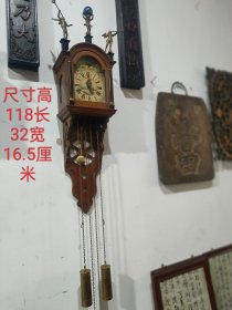 原装进口 荷兰精美古董挂钟。保存完美,款式精致,纯实木外壳 木制色泽温润而厚重,德国赫姆勒机芯 重锤设计走时稳定 每半点整点敲响清脆悦耳的铃声,值得收藏,包老保真