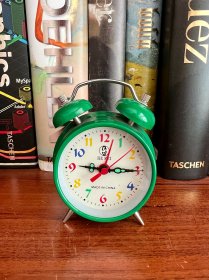 旧藏90年代发条闹钟·复古绿色铁皮闹钟·功能正常