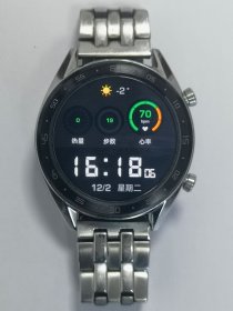 【华为智能手表:HUAWEI WATCH GT】. 运动款,采用316L不锈钢表壳和陶瓷表圈。配备华为原装钛钢卡链式表带,与华为不锈钢表壳相匹配,相得益彰。一次充满电,可以续航15天。手表品相好,近于全新,基本未曾戴用,各项功能完全正常。表盘面已经贴高档钢化保护膜,可避免磨损。随手表赠送华为原装磁吸式充电器。