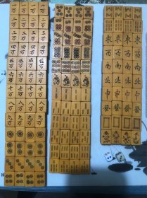 老手工麻将牌一副136张全,加8张配牌加一对色子(年代品相看图自鉴)共144张合售,无盒