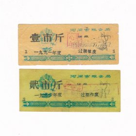 河北省沧州市河间市91年细粮票 2枚 保真粮票收藏