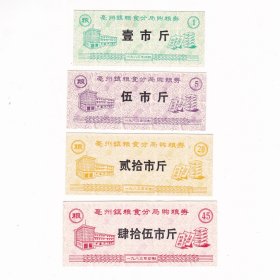 安徽省亳州市亳州镇83年购粮券 4枚一套 保真老粮票收藏