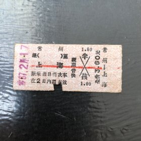 87年2月17日(常州至上海)331次硬座普快火车票(早期火车票根生日票)