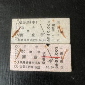 92年10月28日火车票(兰州至南京)硬座普快硬卧票(中)1套2张(生日票早期火车票根)