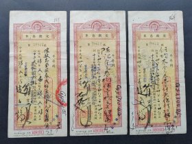 1949年2月四川美丰商业银行存单3张连号,背面贴印花税票,请见图片。