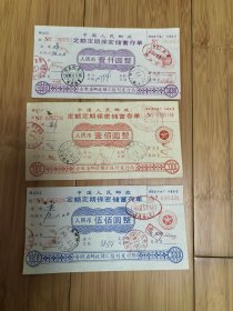 90年代中国人民邮政定额定期保密储蓄存单3种不同合售(安徽蚌埠邮戳)