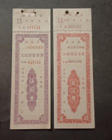 台山县 乡信用合作社定额储蓄存单(二枚合售)