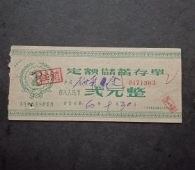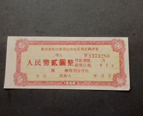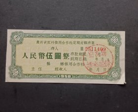 贵州省农村信用合作社定期定额存单(贰拾元)