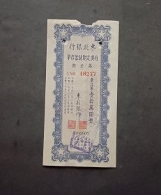 抗美援朝时期 中国人民银行滁县支行农村爱国储蓄存单壹万圆2连张,票面均有:抗美援朝 保家卫国!