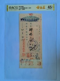 民国时期老支票:西安市银行面值4亿元的超大额竖版支票(爱藏金标评级45EPQ,金山王,包邮)