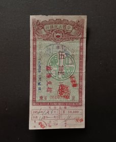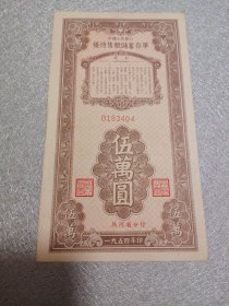 1954年中国人民银行(热河省分行)优待售粮储蓄存单 伍万圆
