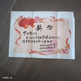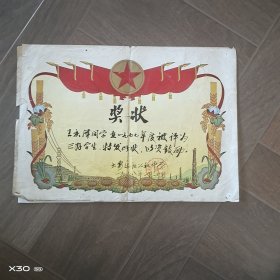 表扬证书一张 1972年 年终“三好”学生 南宁市燎原小学 四年级一班