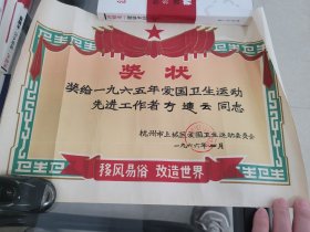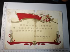 1964年河南省商丘市,东风人民公社红十字会奖状,
