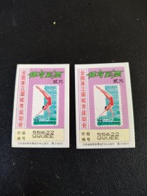 全新未使用体育彩票《全国第三届城市运动会体育彩票 贰元》2张,江苏省体育彩票发行中心发行,(6.3*4.2)