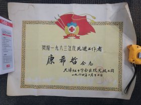 1958年黑龙江省,牡丹江专区人民医院红十字会奖状,