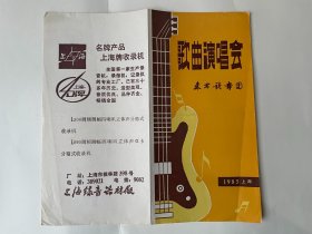 罕见 戏单节目单,歌曲演唱会 东方歌舞团 1985年 上海 成方圆 王立平 吴静 有折痕