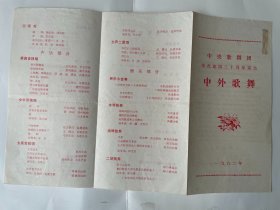 戏单节目单,贴有门票 中央歌舞团 庆祝建团三十周年 中外歌舞 谷建芬 蒋大为