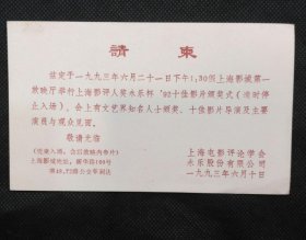 邀请函:一九九三年上海电影评论学会永乐股份有限公司举行九二十佳影片颁奖式请柬