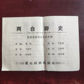 萧山绍剧团演出根据花鼓戏演出本改编两台御史节目单