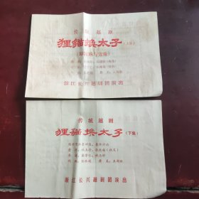 浙江长兴越剧团演出传统越剧狸猫换太子(上、下)节目单两册
