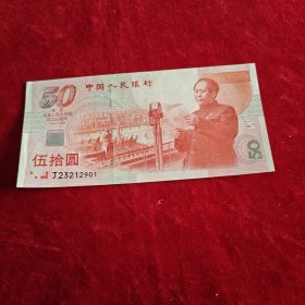 中国人民共和国成立50周年纪念币。50元。
