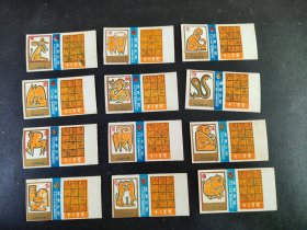 未使用火花卡标《十二生肖旅游火柴 火花(绿色)》全套12枚,中国制造,9.6×5.3