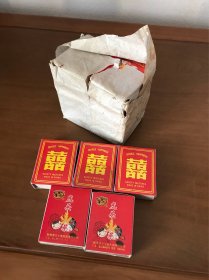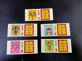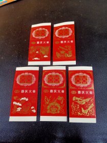 全新未使用火花卡标《红双喜 喜庆火柴 火花》全套5枚,苏州火柴厂出品,10.2*4.6
