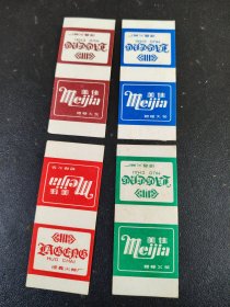 罕见!全新未使用火花卡标《美佳蜡梗火柴 火花 》全套4枚,泾县火柴厂,9.4*4