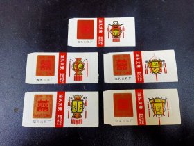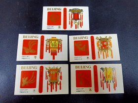 罕见!全新未使用火花卡标《红双喜 宫灯 火柴 火花》全套5枚,北京市火柴厂出品,10*5.5