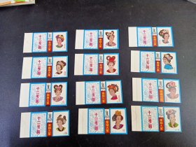 全新未使用火花卡标《十二花仙 火花 :迎春花仙子,水仙仙子,梨花仙子,杏花仙子,牡丹仙子,月季仙子,荷花仙子,蜀葵花仙子,牵牛花仙子,桂花仙子,菊花仙子,梅花仙子》全套12枚,安阳火柴厂出品,10.4*5.2